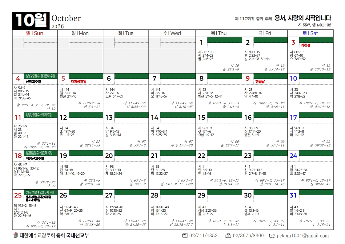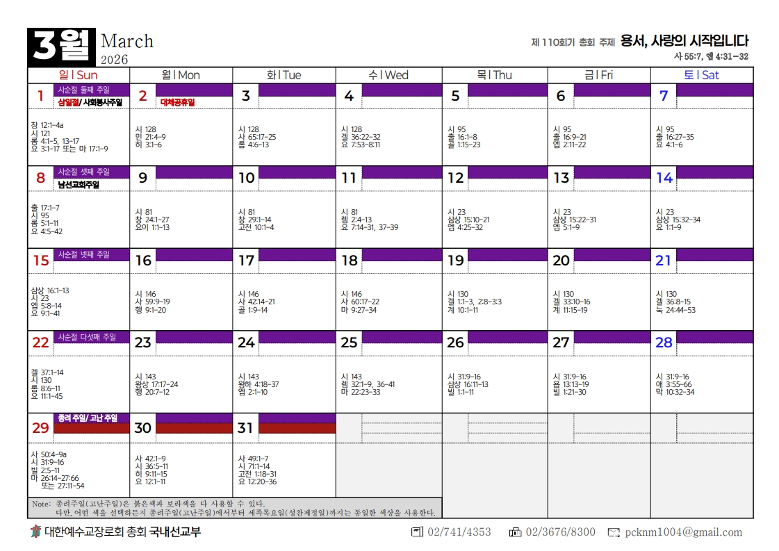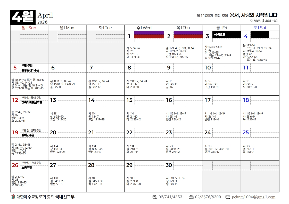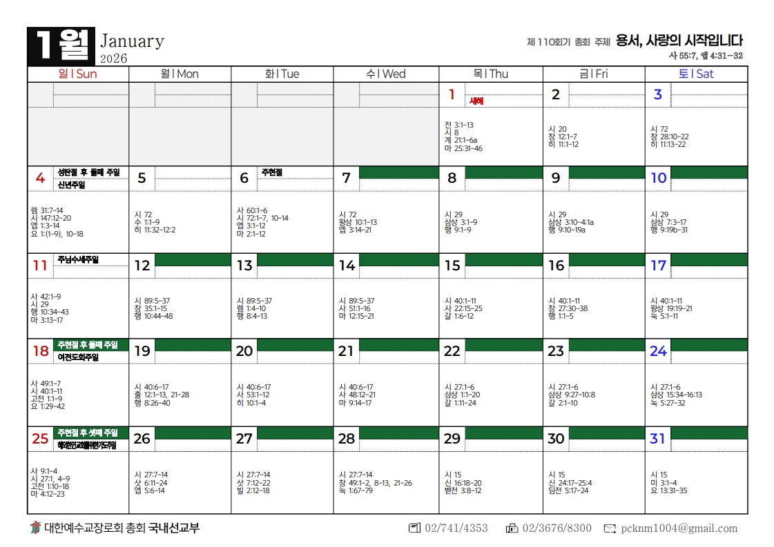 2026년도 총회달력