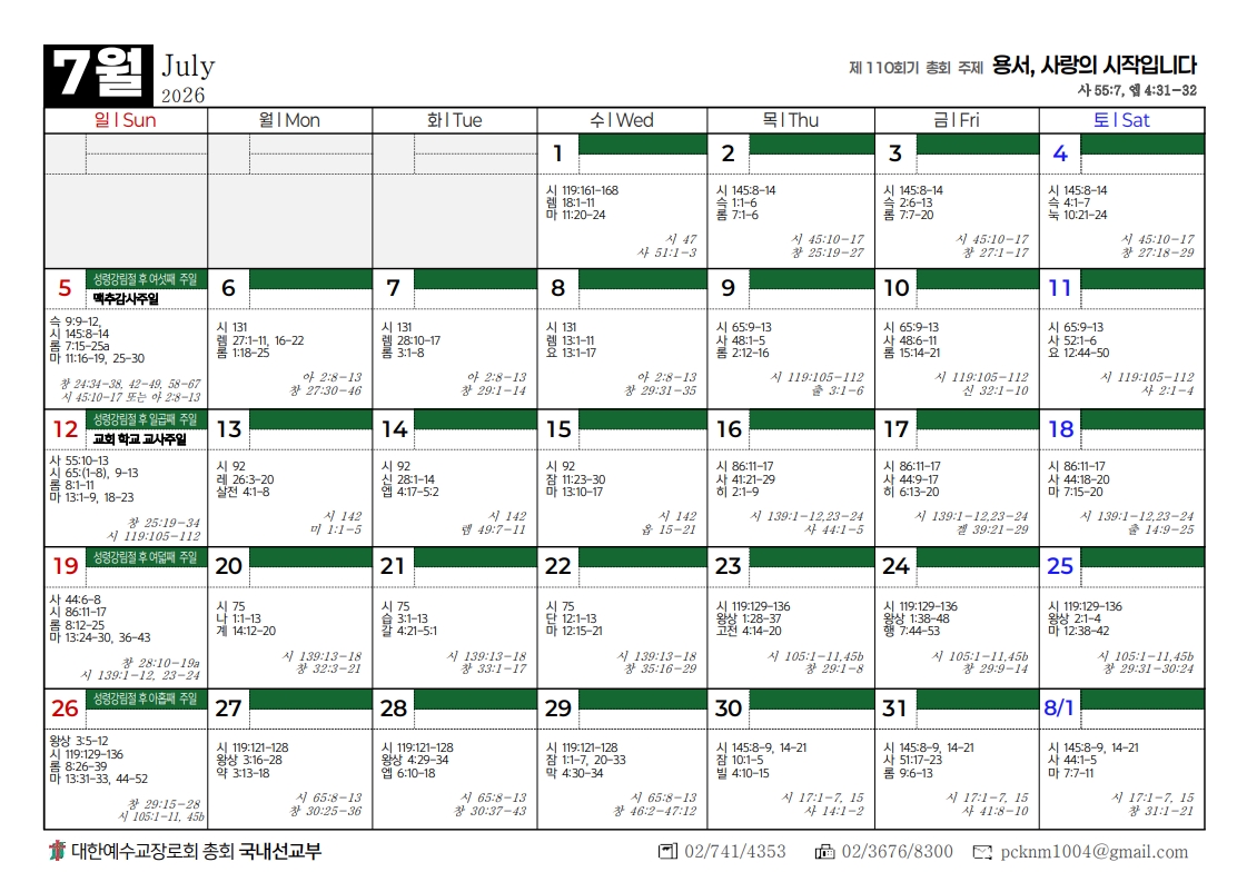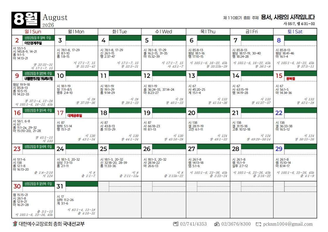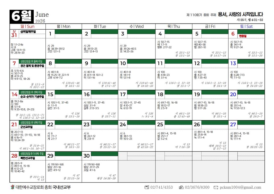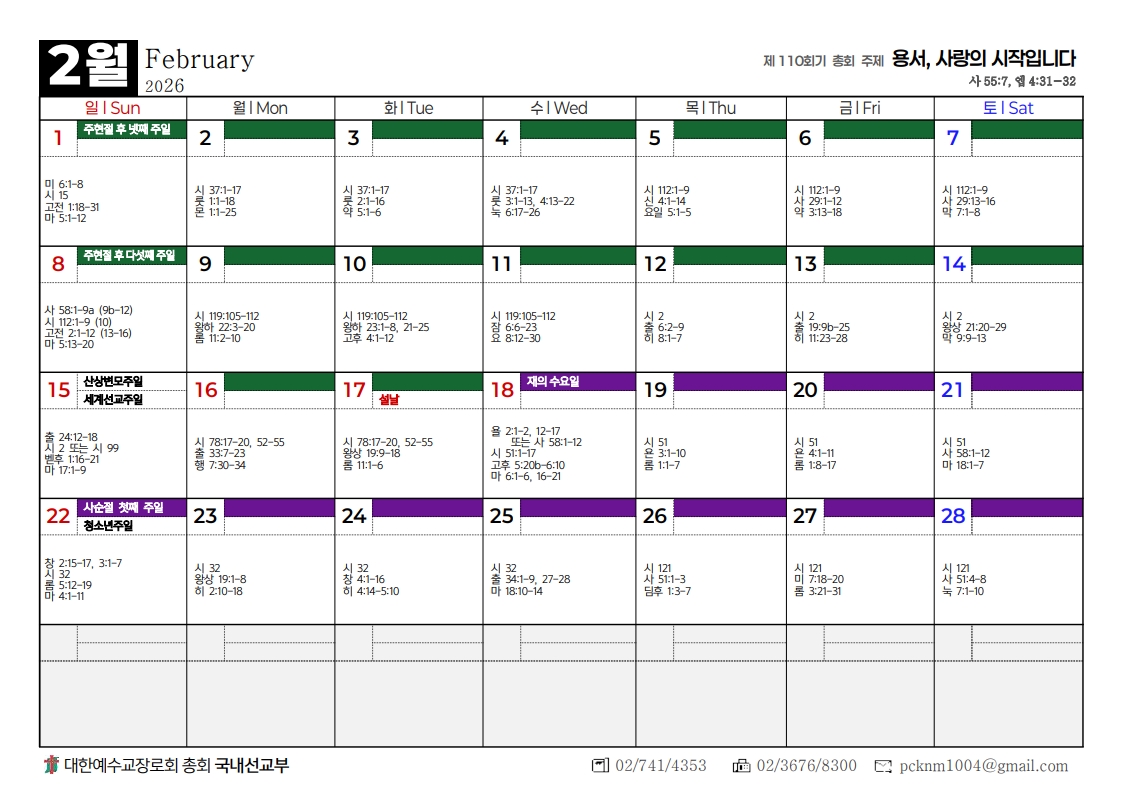 2026년도 총회달력