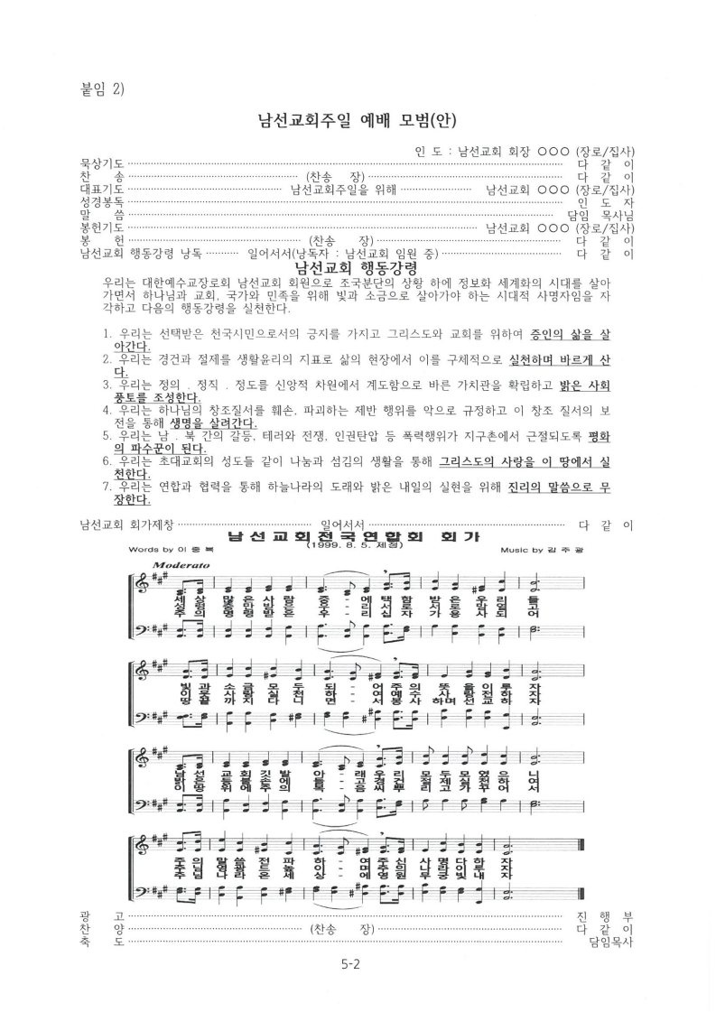 남선교회주일 예배 모범(안) 참고하시기 바랍니다.